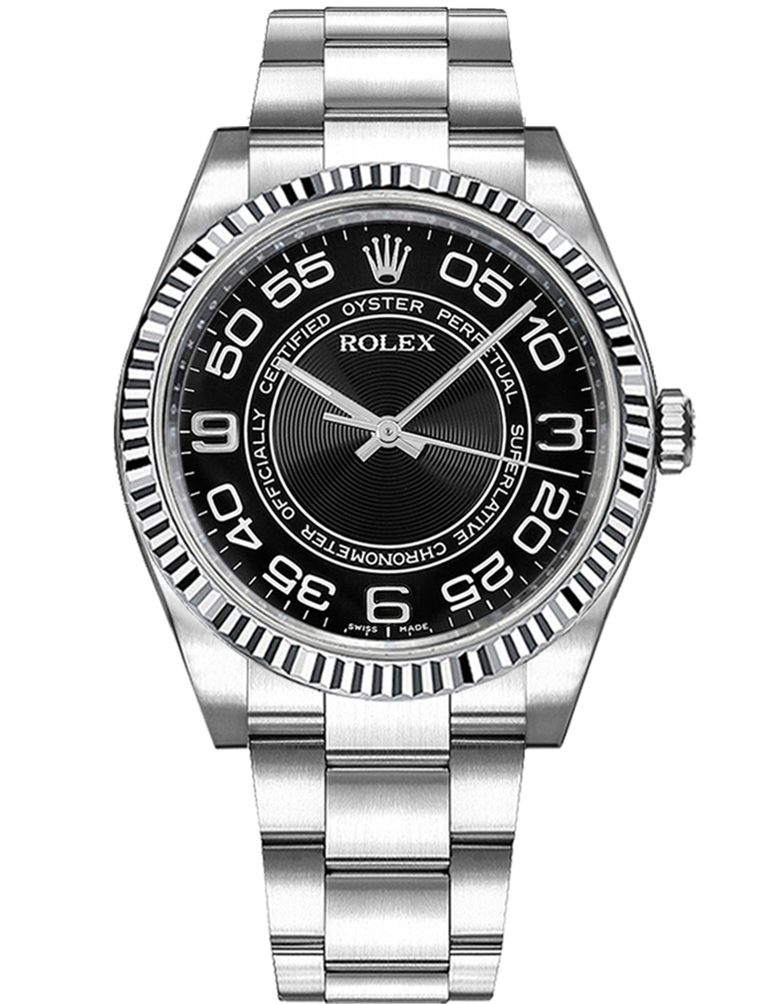 Rolex Oyster Perpetual Concentric Circle Quadrante nero Orologi Replica Automatico 116034 36MM